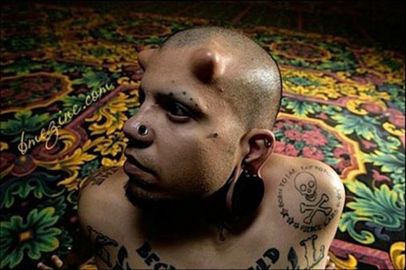 NÃO, NÃO, NÃO! NÃO SE TRATA AQUI DE CHIFRES METAFÓRICOS, DE UMA ODE ROMÂNTICA À TRAIÇÃO. A COISA É MAIS PROFUNDA - NA VERDADE, SUBDERMAL. SÃO MACHOS ADEPTOS DA BODY MODIFICATION QUE SE SUBMETEM A PROCEDIMENTOS INVASIVOS PARA MODIFICAR O PRÓPRIO CORPO.